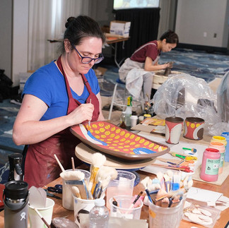 We can't believe how much learned so much each day, in every faucet of the craft! From learning new decorating ideas, slab-building techniques, throwing BIG, throwing small (hello, teapot spouts!), coil-building, glazing tips and more. There were also lots of breaks in between presentations to go up and ask questions one-on-one with the guest artists.
